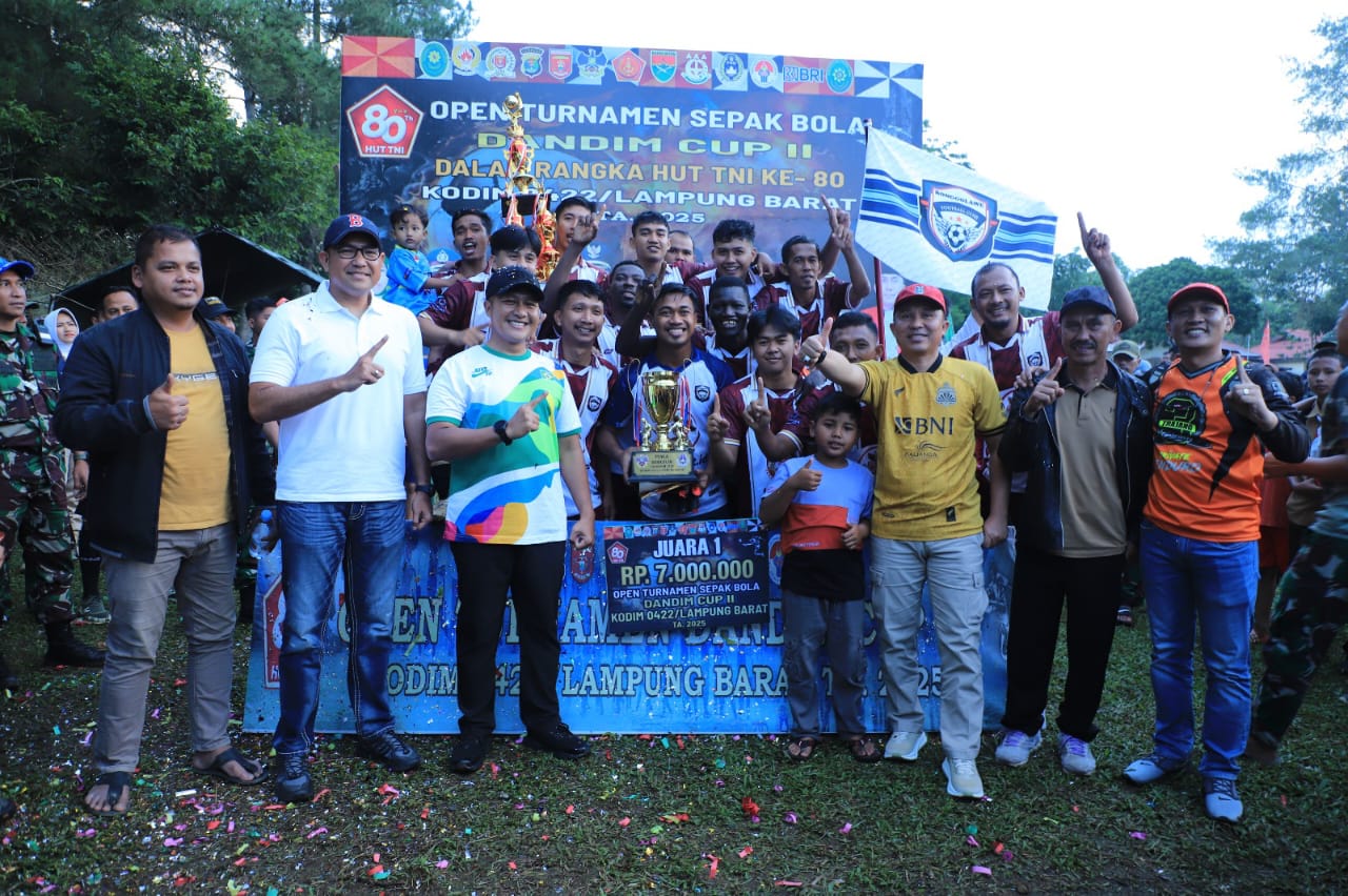 NUSAN.ID – Turnamen sepak bola Dandim Cup Tahun 2025, resmi ditutup Bupati Lampung Barat Parosil Mabsus di lapangan Indrapati Cakra Negera, Kecamatan Balik Bukit, Jum’at 10 Oktober 2025.