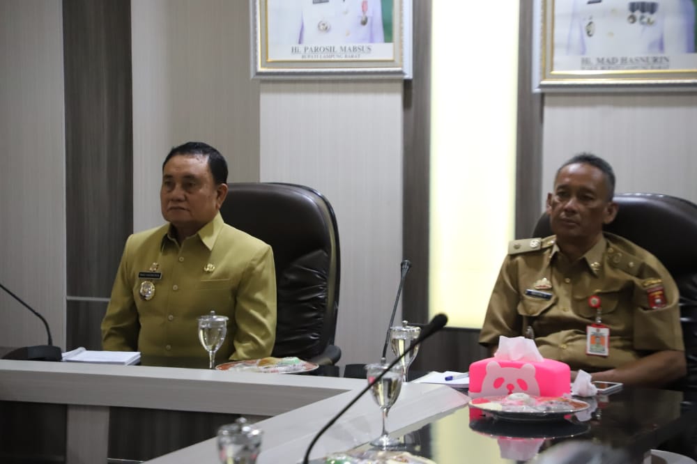 Sementara Pemerintah Kabupaten Lampung Barat mengikuti kegiatan tersebut melalui Virtual/Zoom Meeting, dipimpin langsung oleh Wakil Bupati Lampung Barat Drs. Mad Hasnurin dan didampingi oleh Asissten, Kepala Perangkat Daerah Kabupaten Lampung Barat.