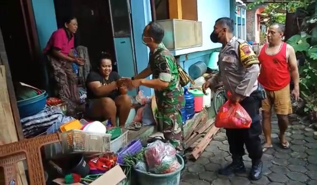 Wujud Kepedulian, Babinsa Bersama Bhabinkamtibmas Kepatihan Wetan Berikan Bantuan Sembako Kepada Warganya